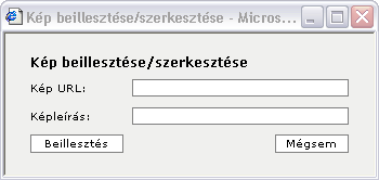 Egyszerűen meg kell adni a beilleszteni kívánt kép elérésének URL-jét, valamint egy rövd leírást, mely alternatív szövegként kerül megjelenítésre (pl. nem grafikus böngészőkben).