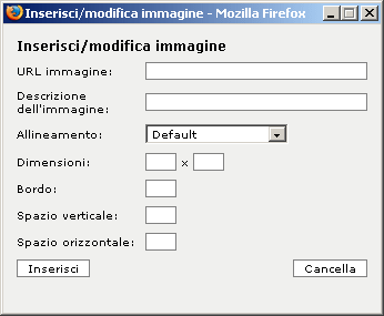 Il pulsante 'inserisci immagine' apre la finestra mostrata qui sotto.