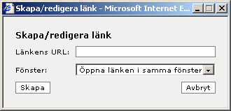 Detta fönster har två fält länkens URL/adress samt hur länken skall öppnas.