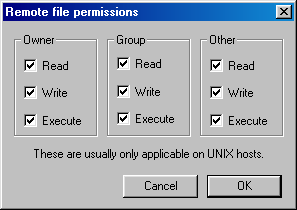 If your FTP client uses a graphical display for setting permissions, that display will look something like this: