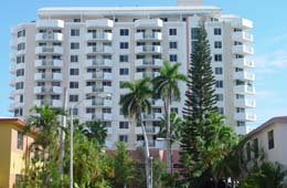 Plaza is a 12-story mid-rise that overlooks Biscayne Bay.