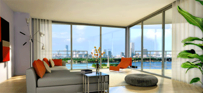 a 3-story low-rise that overlooks Biscayne bay. To