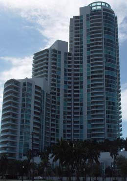 is a 37-story high-rise building that overlooks Biscayne Bay and the