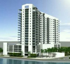 is a 21-story high-rise that overlooks the Miami River, Biscayne Bay,
