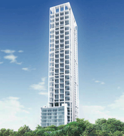 is a 50-story high-rise that overlooks Biscayne bay and downtown Miami.