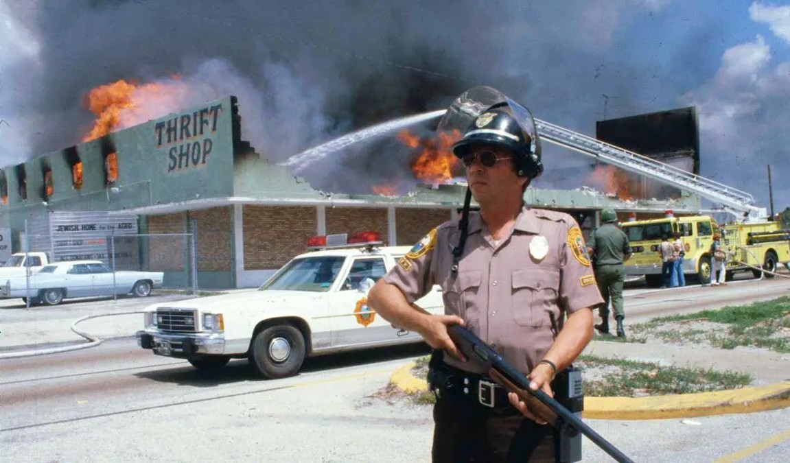 As soon as word reached South Florida that the McDuffie cops had been acquitted, residents began a march from Liberty City (Miami’s largest Black neighborhood) to the Dade County justice building. Upon arrival the NAACP could not produce a speaker, and someone went to the front of the crowd and asked for a prayer. One member of the crowd yelled “We’re tired of praying! Let’s march in the streets!” The crowd soon grew unruly and out of control. Bricks began to fly, police cars began being overturned and burned. The city was about to fall into chaos.