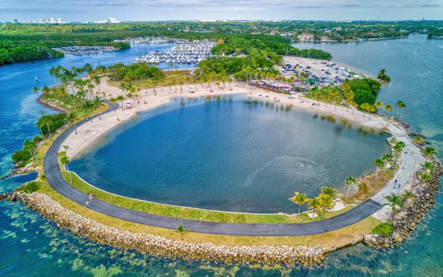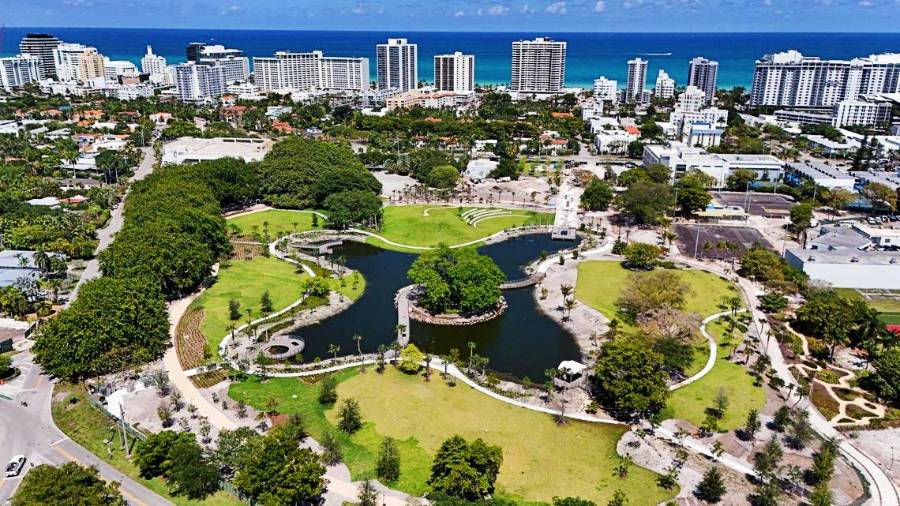 Miami Beach’s Bayshore Park opened in September 2025 and is now one of the largest public parks in the city. Located along Pine Tree Drive near 24th Street, the 20-acre green space features a scenic lake, a dog park, six competition-level tennis courts, and multiple recreational areas for residents and visitors alike. At the heart of the park is a central lake equipped with a circulation system that keeps the water oxygenated, along with several overlooks for viewing. The lake also includes infrastructure designed to collect and retain a portion of stormwater runoff from surrounding neighborhoods, helping to support the city’s broader resilience efforts.
