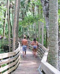 A wooden boardwalk runs along the periphery of the run (feels like a clear river). The main swimming area is just down from the complex. A 10-minute walk along the plank trail leads to the springhead one way, or past Thursby House to the St. Johns the other.
