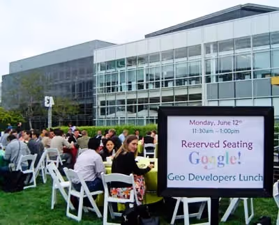 After the tour, we enjoyed a delicious lunch in the courtyard before moving inside for presentations on the latest Google Maps and Google Earth features.