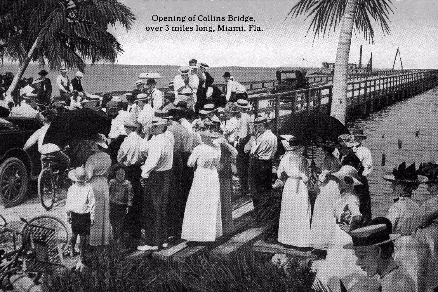 Collins enlisted his children, who managed the New Jersey nurseries, to finance the canal. Hesitant at first, the family agreed under one condition: Collins had to build a bridge across the canal, opening the island to traffic and real estate development. This led to the founding of the Miami Beach Improvement Company, and construction of the bridge in 1912 triggered a surge in property development, with advertisements calling the area “a veritable Treasure Island…and winter playground for the masses.”
