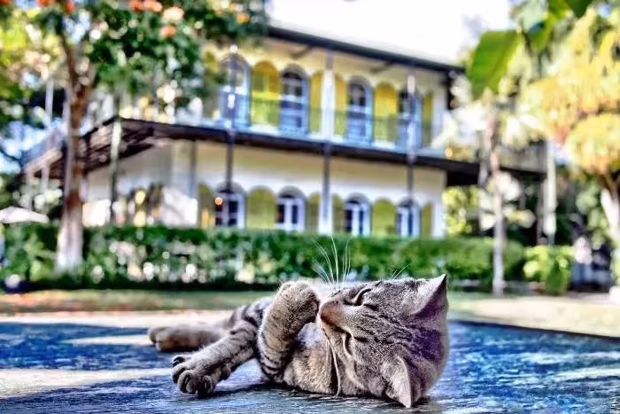 In addition to the picturesque house and tropical gardens, the descendants of the writer’s 6-toed cat Snowball preside over the household and grounds, welcoming visitors with a certain reserved affection.