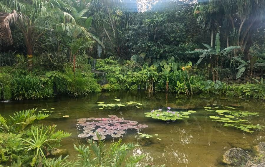 Around the pond is a secondary pathway that leads you through a growth of reeds and bushes on a mound of coral rock. This soothing oasis makes a great spot to take a break before you continue on your walk.