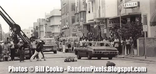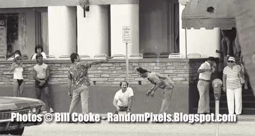 I was an amateur photographer in 1983, working at a Collins Avenue condominium. Hearing about the filming, I grabbed my Nikon FM2 and headed straight for the action.