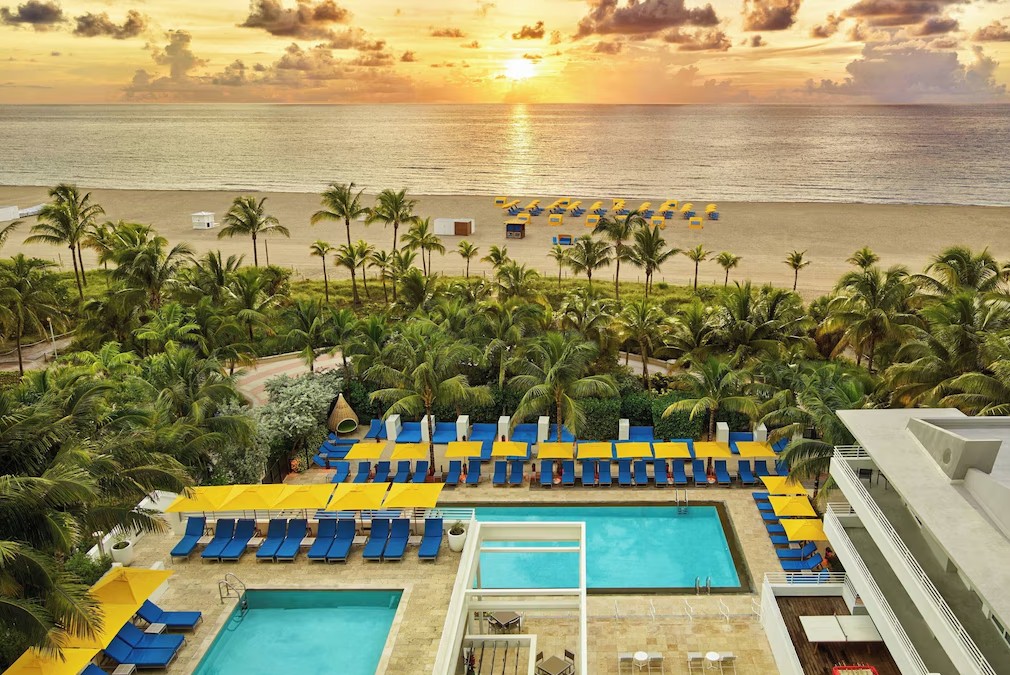 Royal Palm South Beach Miami sits right where travelers want to be: ocean in front, Lincoln Road shopping behind, and everything walkable in between. The hotel blends resort comforts with classic South Beach flair — bright, modern rooms, a spacious beachfront pool area, and easy access to the sand without crossing a street. Dining is casual and convenient, with on-site options designed for grazing between beach time and nights out, plus countless top-tier restaurants just a short stroll away. This is a hotel built for people who plan to use their room, not hide in it.
